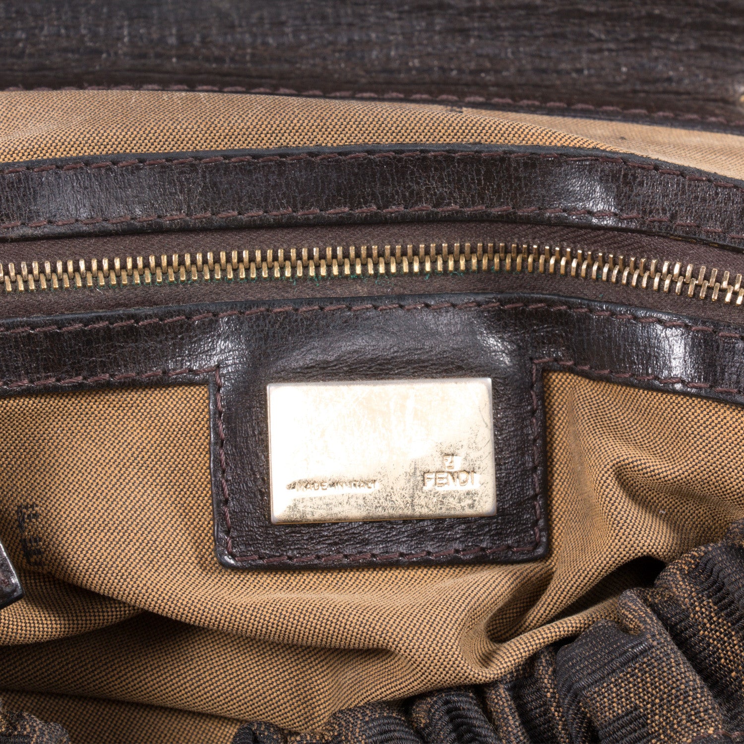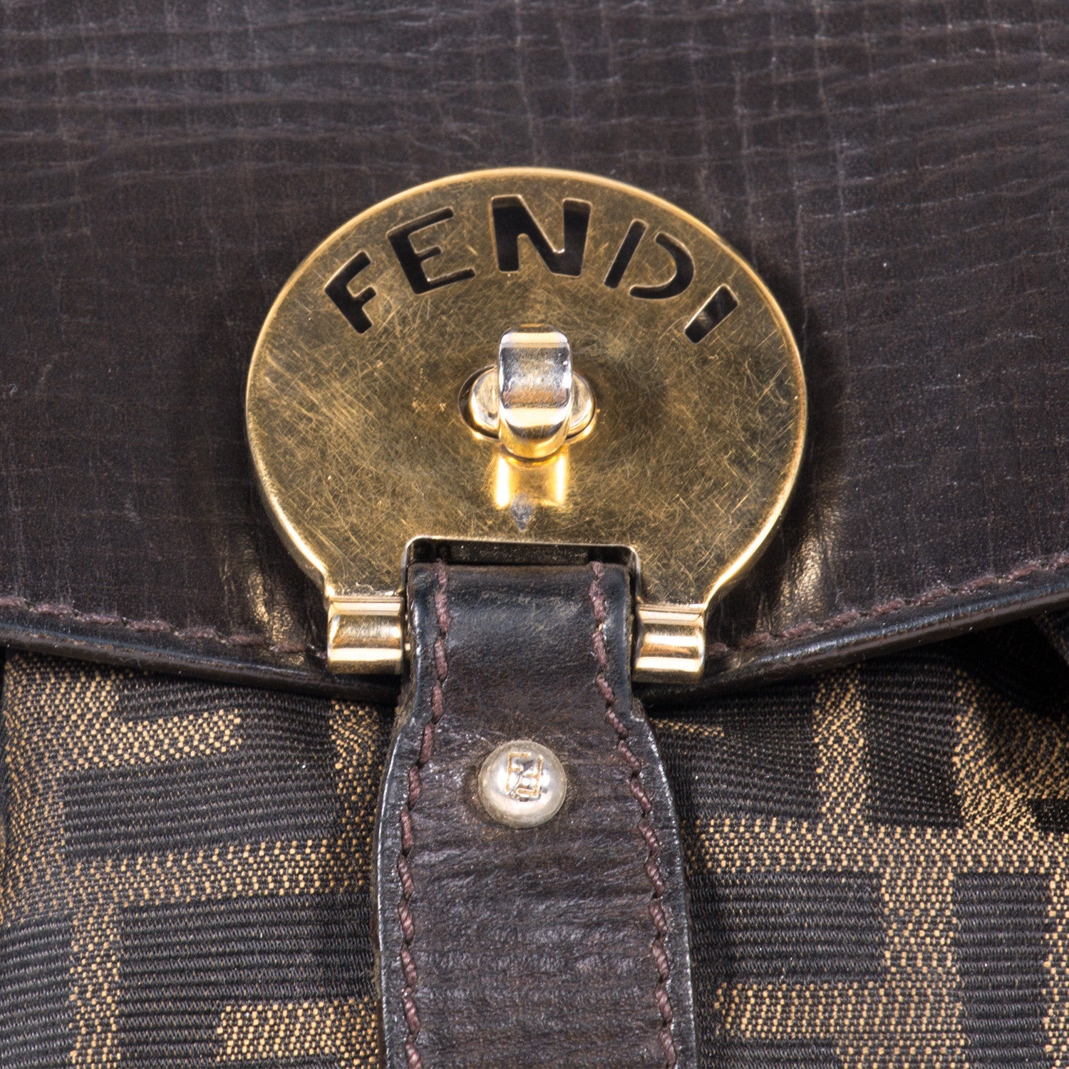 Details: Brown And Tobacco Canvas / Gold Tone Hardware / Brown Leather Trim With Studs Embellishments / Single Rolled Top Handle / Brown Interior Woven Lining / Single Zip Pocket At Interior Wall / Flap With Turn Lock Closure At Front