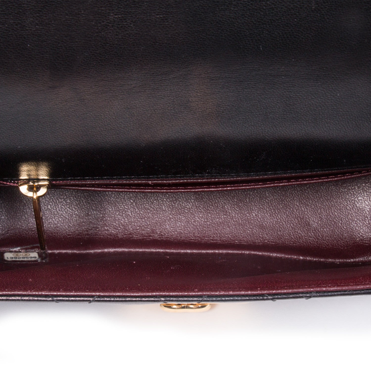 Details: Black Quilted Leather Chanel / Gold-Tone Hardware / Gold Chain Link Shoulder Strap With Leather / Bordeaux Interior Leather / Two Interior Pockets, One With Zip Closure And Another Patch Pocket / Chanel CC Push Clasp Closure At Front Face