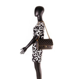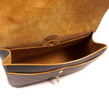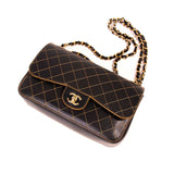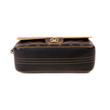 Details: Black Calfskin Leather / Gold-Tone Hardware / Chain-Link and Leather Shoulder Strap / Tan Chamois Lining / Dual Compartments with Two Flat Pockets at Inside / Dual Flap, One with Push-Button and Another with Turn Lock Closure