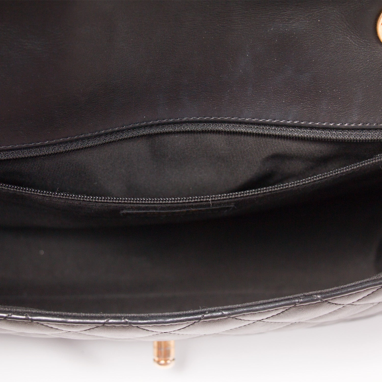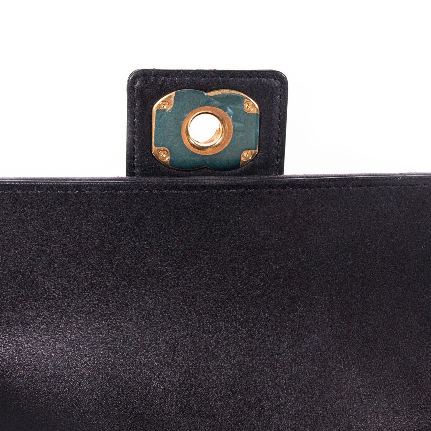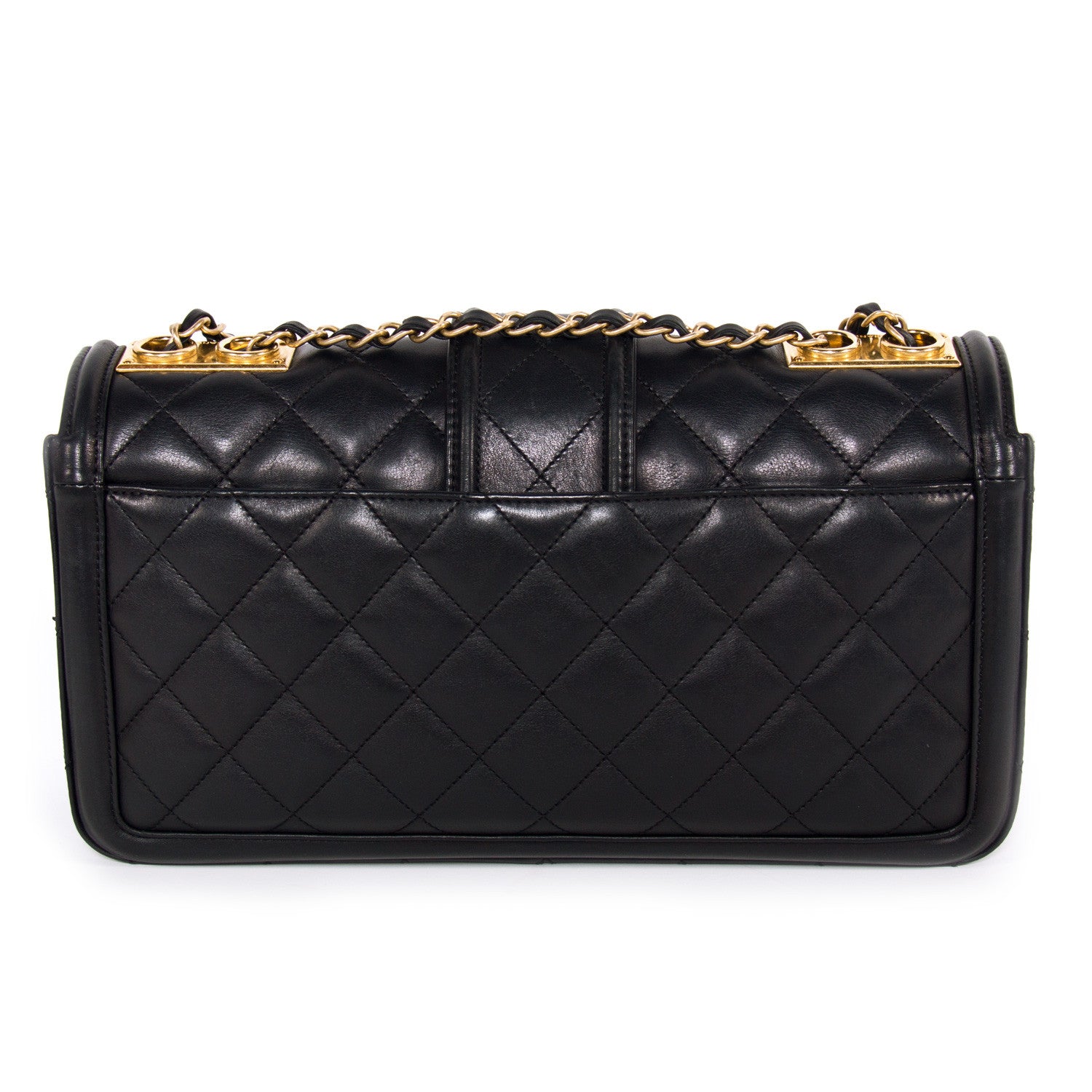 Details: Pre-Spring Summer 2015 Collection / Black Calfskin Quilted Leather With Gold-Tone Hardware / Single Chain-Link Shoulder Strap With Leather Accent And Leather Pad/ Exterior Flat Pocket At Exterior / Black Fabric Interior Lining / Single Compartment With Single Zip Pocket / Flap Closure At Front With Gold Chanel CC Press Lock