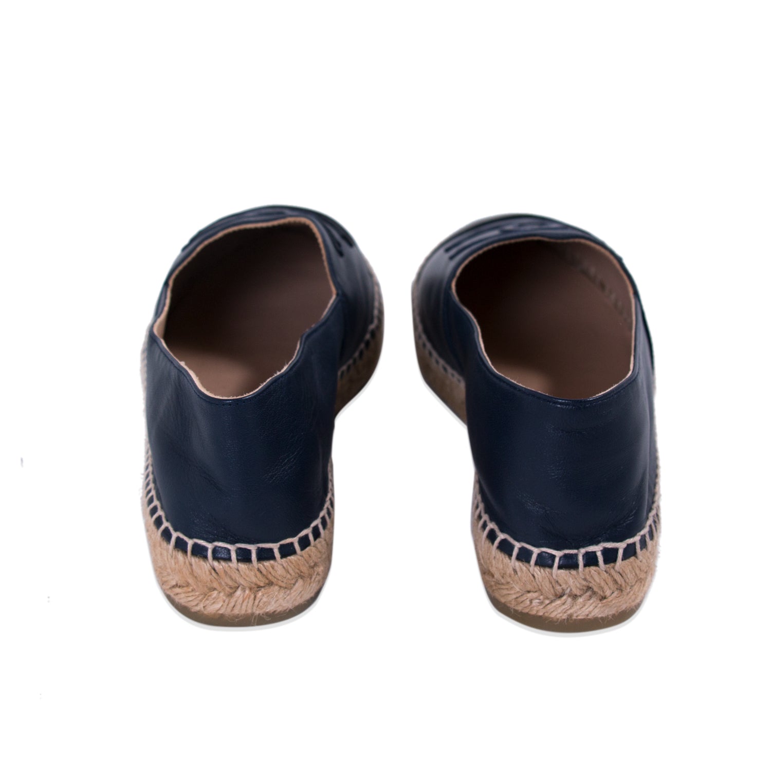 Details: Navy Blue Lambskin Leather / CC Logo at Vamps / Black Leather Rounded Toe / Jute Trims / Rubber Sole