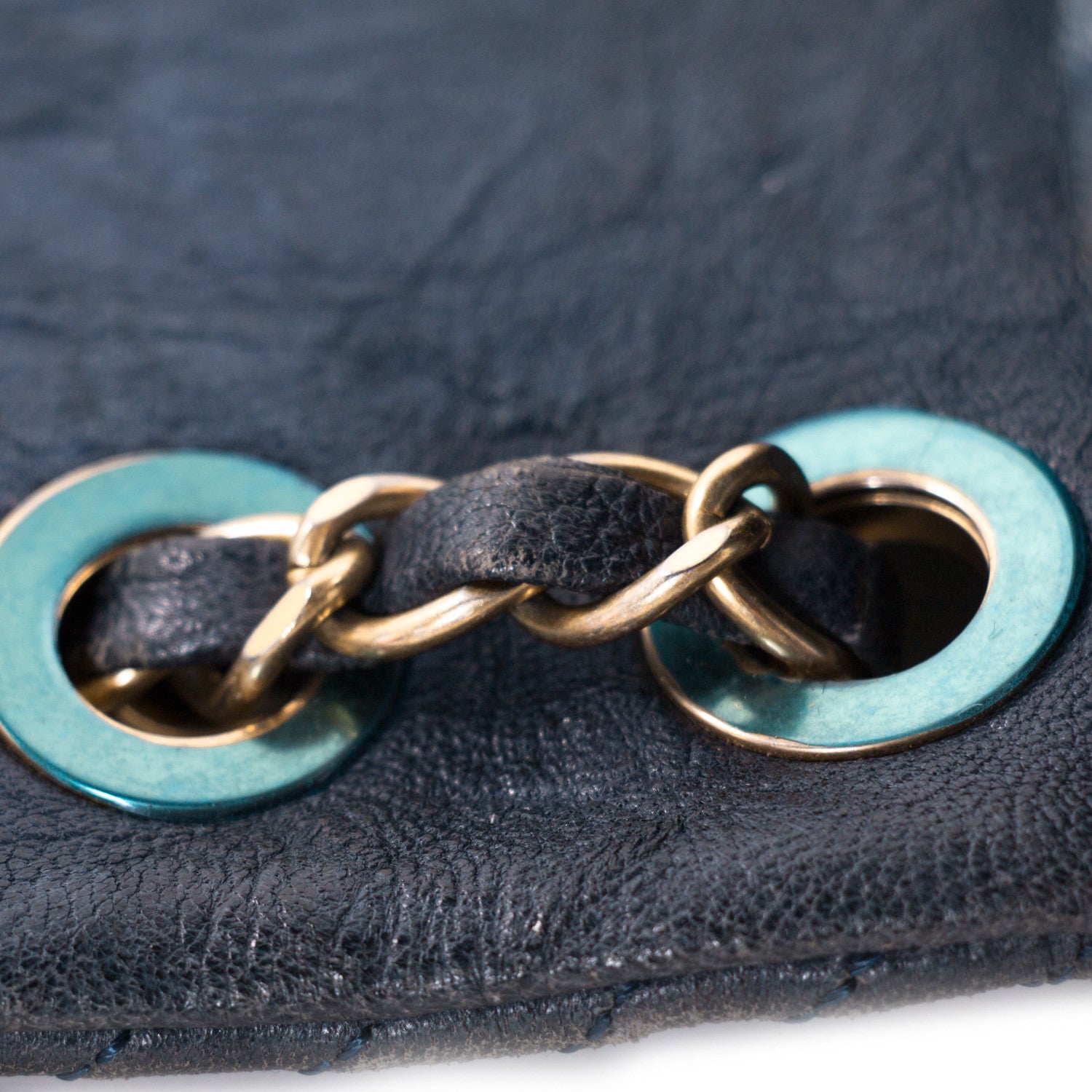 Details: Navy Blue Quilted Leather / Gold Tone Hardware / Dual Chain-Link Leather Shoulder Strap / Black Woven Lining / Zip Pocket at Wall / CC Logo at Front Face / Turn Lock Closure at Front Flap