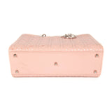 Details: Light Pink Cannage Patent Leather / Silver-Tone Hardware / Dual Rolled Handles / Detachable Shoulder Strap / Dior Charm at Front / Protective Studs At Base / Grey Diorissimo Canvas Lining / Zipper Pocket at Interior Wall / Zipper Closure at Top