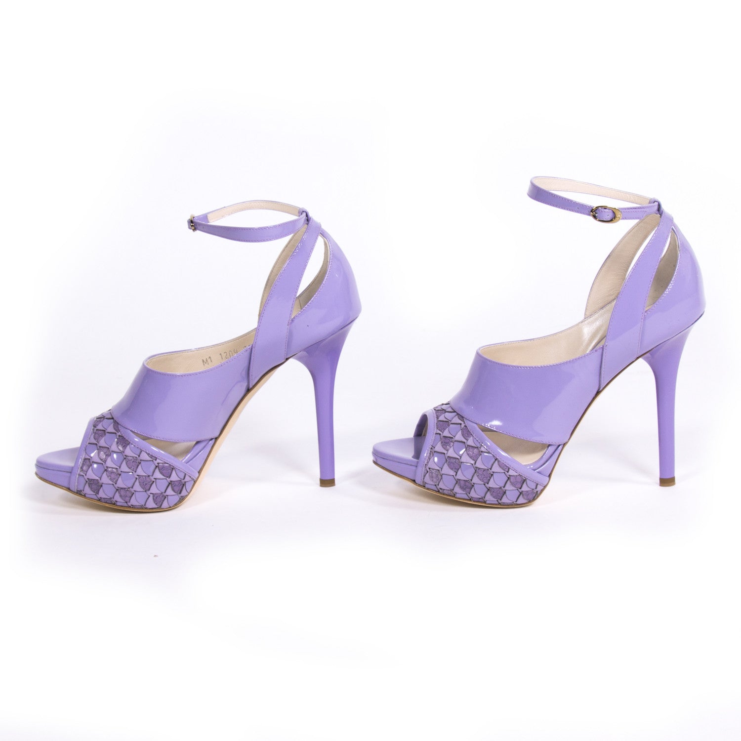 Details: Combination Of Light Purple Vernie Leather And Purple Snake Skin /  Open Toe / Tonal Stitching / Dior Engraved Buckle Closure Strap At Ankle Strap / Leather Lining and Sole / Covered Heels / Nude Inside Leather