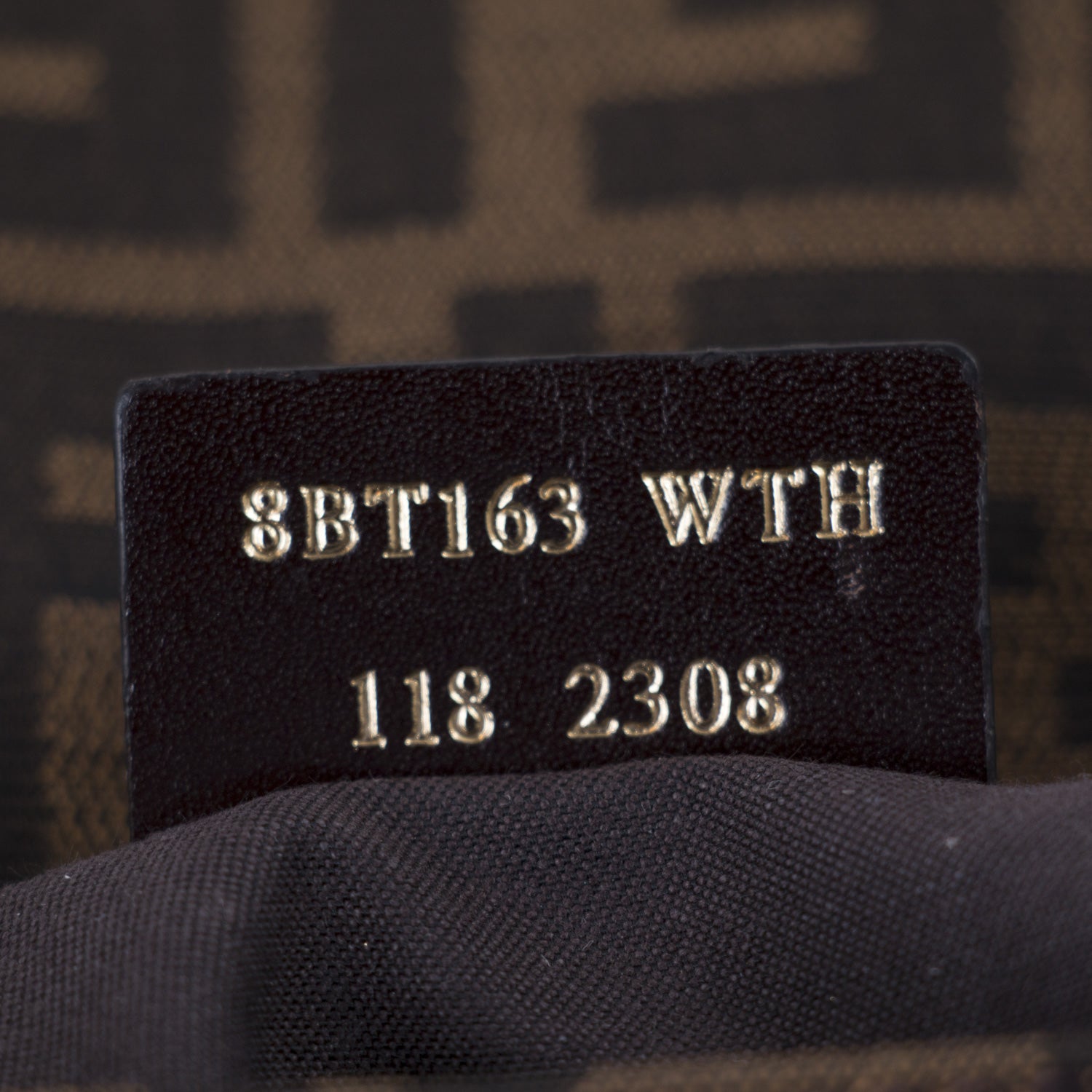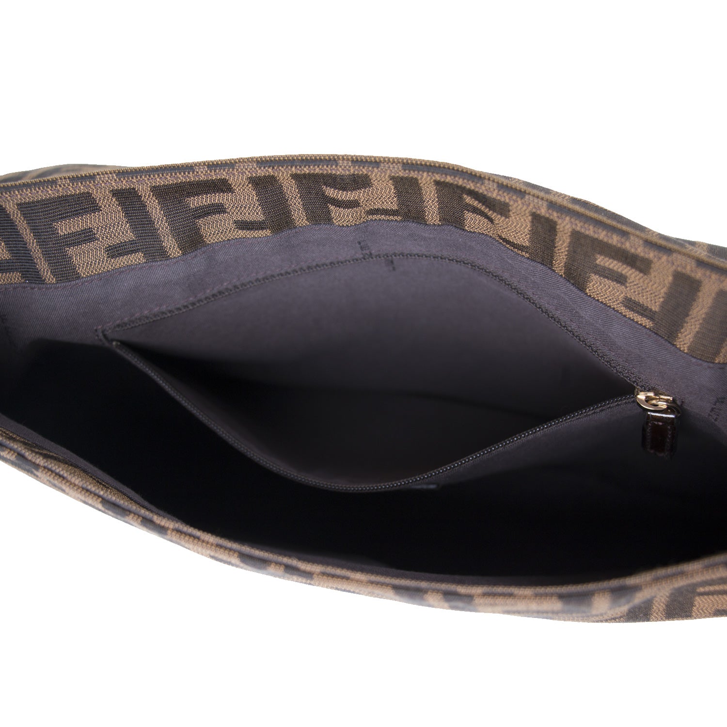 Details: Brown and Tobacco Zucca Print Canvas / Gold-Tone Hardware / Brown Leather Long Adjustable Shoulder Strap / Metal Plate Logo on the Front / Dark Grey Fabric Lining / Zipper Pocket at Inside / Magnetic Snap Closure at Front Flap