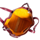 Details: Burgundy and Multicolor Coated Canvas / Leather Trim / Dual Rolled Handles / Silver Hardware / Detachable Shoulder Strap / Marigold Canvas Lining / One Compartment with Single Pocket / Clasp Closure at Top
