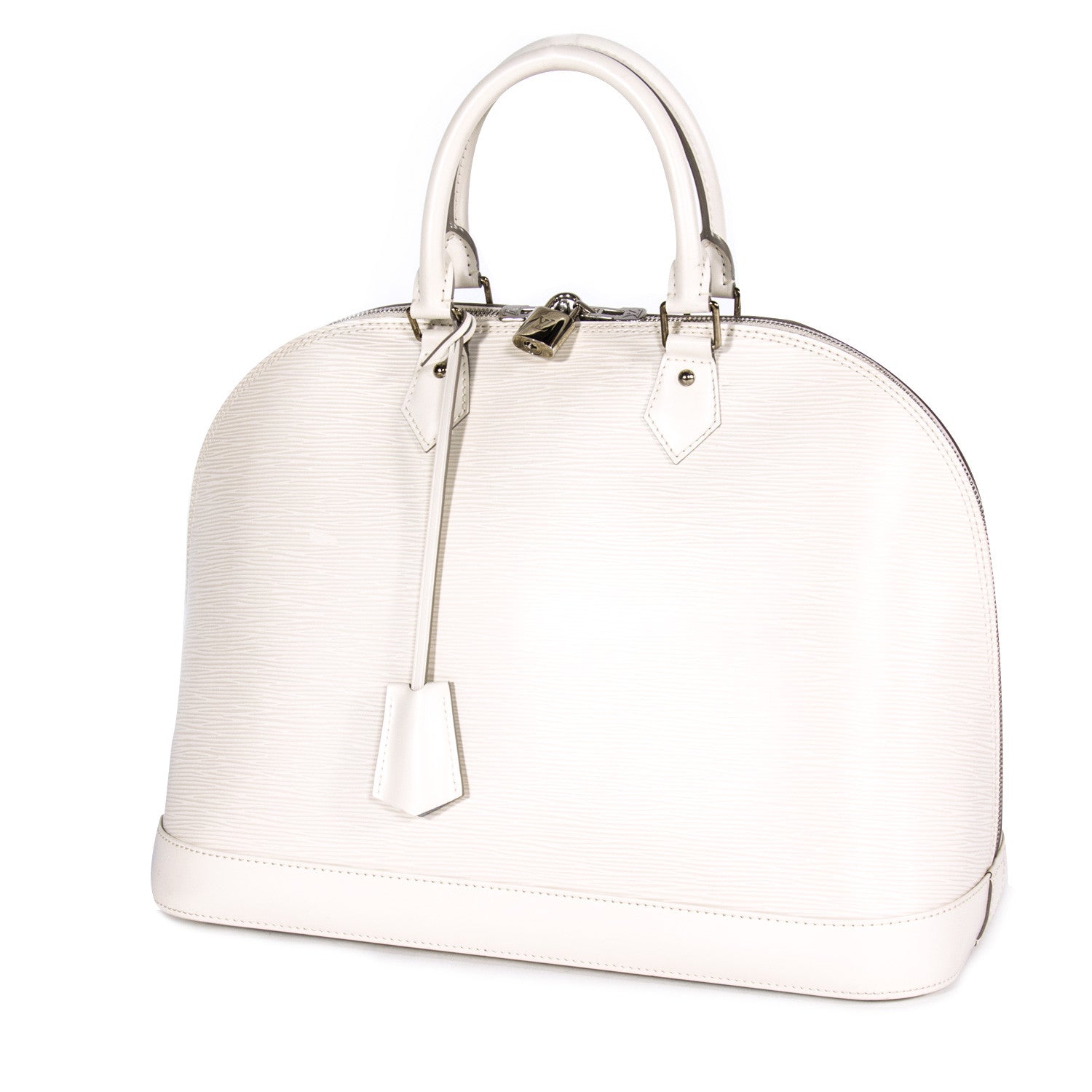 Description: Authentic White Louis Vuitton Alma GM Handbag