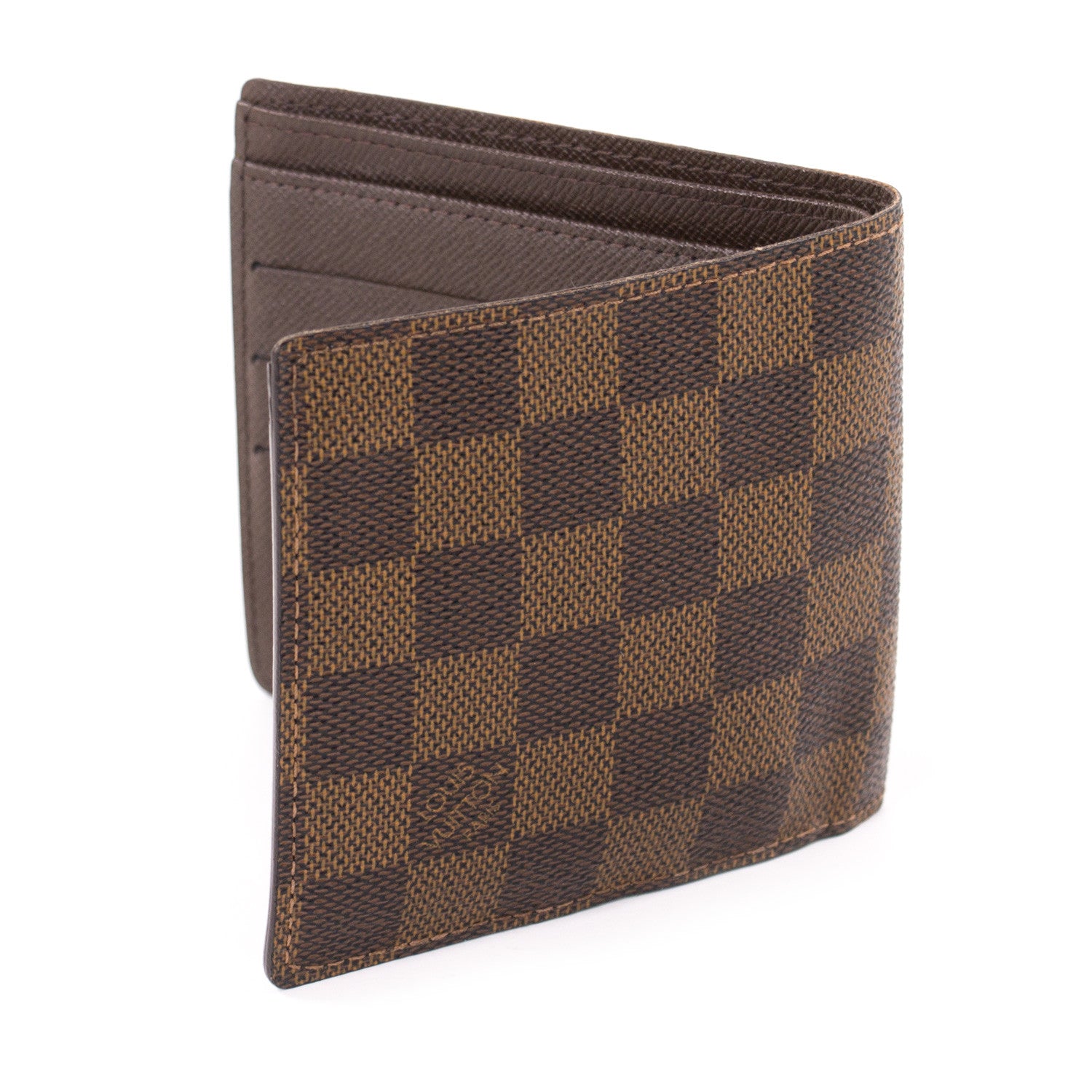 Details: Damier Ebene Coated Canvas / Chocolate-Coloured Smooth Leather Lining / One Snap-Closure Coin Compartment / Three Credit Card Slots / Two Compartments For Bills / Single Interior Slot For Business Cards