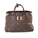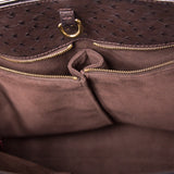 Details: Brown Quilted Monogram Coated Canvas / Gold-Tone Hardware / Snake Skin Rolled Handles and Adjustable Shoulder Strap / Brown Ostrich Leather Accent at Top Line / Exterior Pocket at Front with Tortoiseshell Accented Turn-Lock / Brown Alacantra Lining / Three Zipper Closure Pockets / Clasp Closure at Top