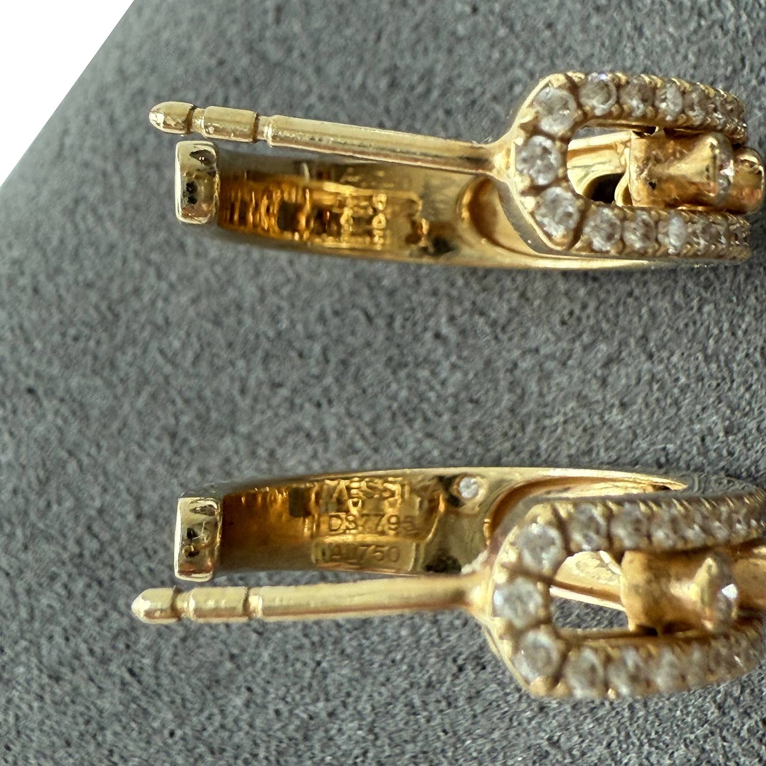 Details: 18K Yellow Gold / 0.05 Carat Diamonds / Moving Diamonds / Protector Closure / 1.5 cm Diameter