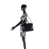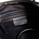 Details: Black Goatskin Leather / Silver-Tone Hardware / Dual Rolled Handles / Detachable Shoulder Strap / Logo at Front / Beige Fabric Interior Lining / Two Flat Pockets and One Zipper Pocket at Inside / Zipper Closure at Top