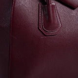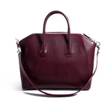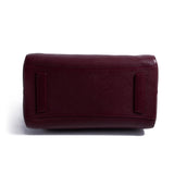 Details: Burgundy Goatskin Leather / Silver-Tone Hardware / Dual Rolled Handles / Detachable Shoulder Strap / Logo at Front / Beige Fabric Interior Lining / Two Flat Pockets and One Zipper Pocket at Inside / Zipper Closure at Top
