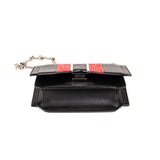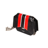 Details: Black Calf Leather, Red Python, Black Lizard / Silver Tone Hardware / Chain-Link Shoulder Strap / Leather Interior Lining / Slit Pockets and Card Slots at Interior / Push Lock Closure at Front Flap