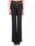 Details: Black Pants / Skirt Detail Featuring Gold-Tone Zipper Embellishments At Waist / Total Stitching / Expressed Zip Closure At Center Front