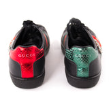 Description: Authentic Gucci Pre-Owned Ace Black Leather Embroidered Sneaker