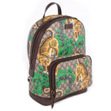 Details: Beige-Ebony GG Supreme Coated Canvas With Gucci Bengal Print / Brown Leather Trim / Embossed Logo Patch At Front Face / Adjustable Signature Green And Red Web Straps / Flat Leather Handle / Brass Hardware / Exterior Zip Pocket At Front Face / Microfiber Lining With Suede Finish At Interior / Interior Pocket For Laptop / Two Smartphone Pocket / Two-Way Zip-Around Closure