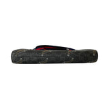 Blue and Red Web Strap with Leather Pad / Exterior Zip Pocket at Front / One Compartment with 2 Slit Pockets and Zipper Pocket / Zipper Closure