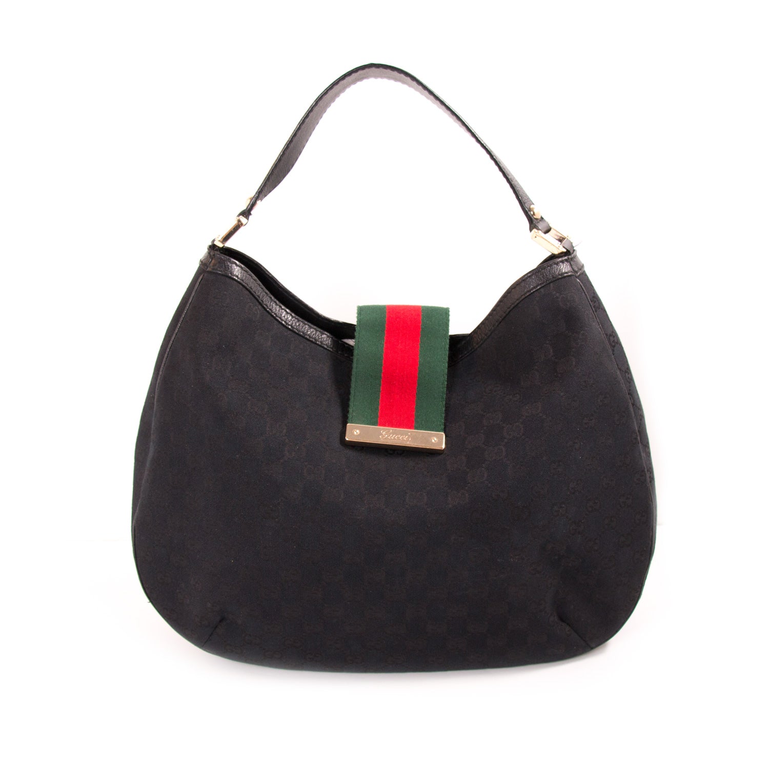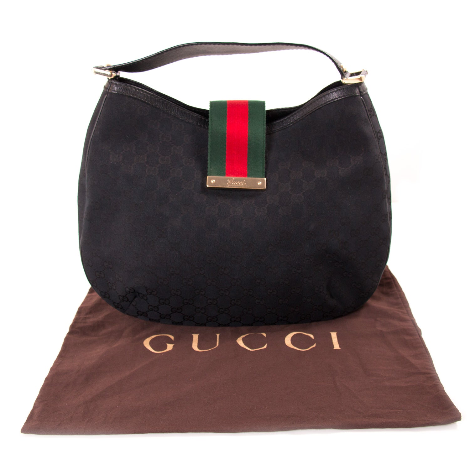Description: Authentic Pre-Owned Gucci GG Black Canvas Hobo Bag