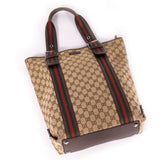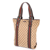 Details: Brown Monogram GG Canvas / Silver-Tone Hardware / Dual Rolled Adjustable Handles In Brown Leather And Web Canvas / Brown Leather Base With Studs / Brown Interior Canvas Lining / Single Zip Pocket At Interior / Slit Phone Pocket At Interior Wall / Zip Closure At Top