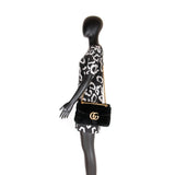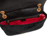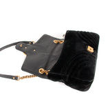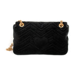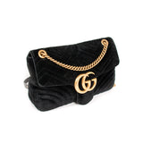 Details: Black Quilted Chevron Velvet / Gold-Tone Hardware / Chain-Link and Leather Pad Shoulder Strap / Double G Logo at Front / Satin Interior Lining / Zipper Pocket at Inside / Push Button Flap Closure at Top