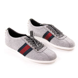 Description: Authentic Pre-Owned Gucci Glitter Web Sneaker with Studs