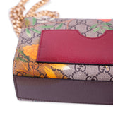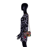 Details: Multicolor Ebony Coated Canvas / Gold-Tone Hardware / Chain Shoulder Strap / Brown Leather Trim at Sides / Brown Suede Lining / Single Compartment and Slit Pocket At Interior / Push-Button Closure at Front Flap