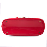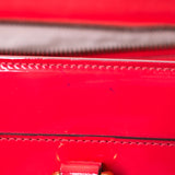 Details: Red Patent Leather / Gold-Tone Hardware / Dual Rolled Handles / Detachable and Adjustable Shoulder Strap / Horsebit Adornment at Front / Beige Canvas Lining / Three Compartments / Four Pockets at Interior, One with Zipper / Open Top