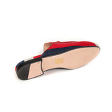 Details: Beige, Blue and Red Stripes / Round Toes / Horse-bit Accent at Top
