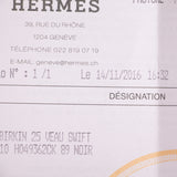 Description: Authentic New Hermes Birkin 25 Black Swift Leather