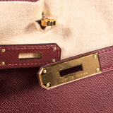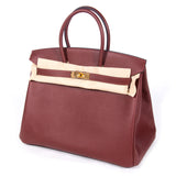 Details: Burgundy Epsom Leather / Gold Tone Hardware / Dual Top Rolled Handles / Burgundy Tonal Leather Lining / Single Large Compartment / Dual Pockets At Interior: Zip Pocket And Slit Pocket / Turn Lock Closure At Front