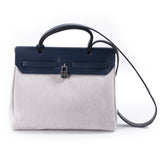 Description: Authentic Pre-Owned Hermès Herbag PM Toile Beige Navy Blue