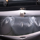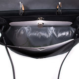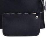 Details: Black Toile Canvas / Palladium Hardware / Black Leather Trim / Double Rolled Handles / Removable Single Shoulder Strap / Zip Pocket at Exterior Back / Attached Pouch at Interior / One Compartment / Pull-Through Closure at Front