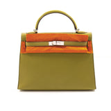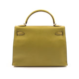 Description: Authentic Pre-Owned Hermès Kelly 32 Sellier Vert Anis Chevre Mysore