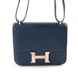 Description: Authentic Pre-Loved Hermès Mini Constance 18 Navy Blue Epsom Leather