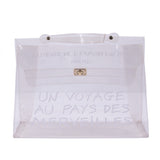 Details: Transparent PVC / Gold-Tone Hardware / Single Flat Top Handle / 'Souvenir de l'Exposition 1997 Hermes Un Voyage Au Pays Des Merveilles' Motif at Front Face / Front Flap Turn Lock Closure