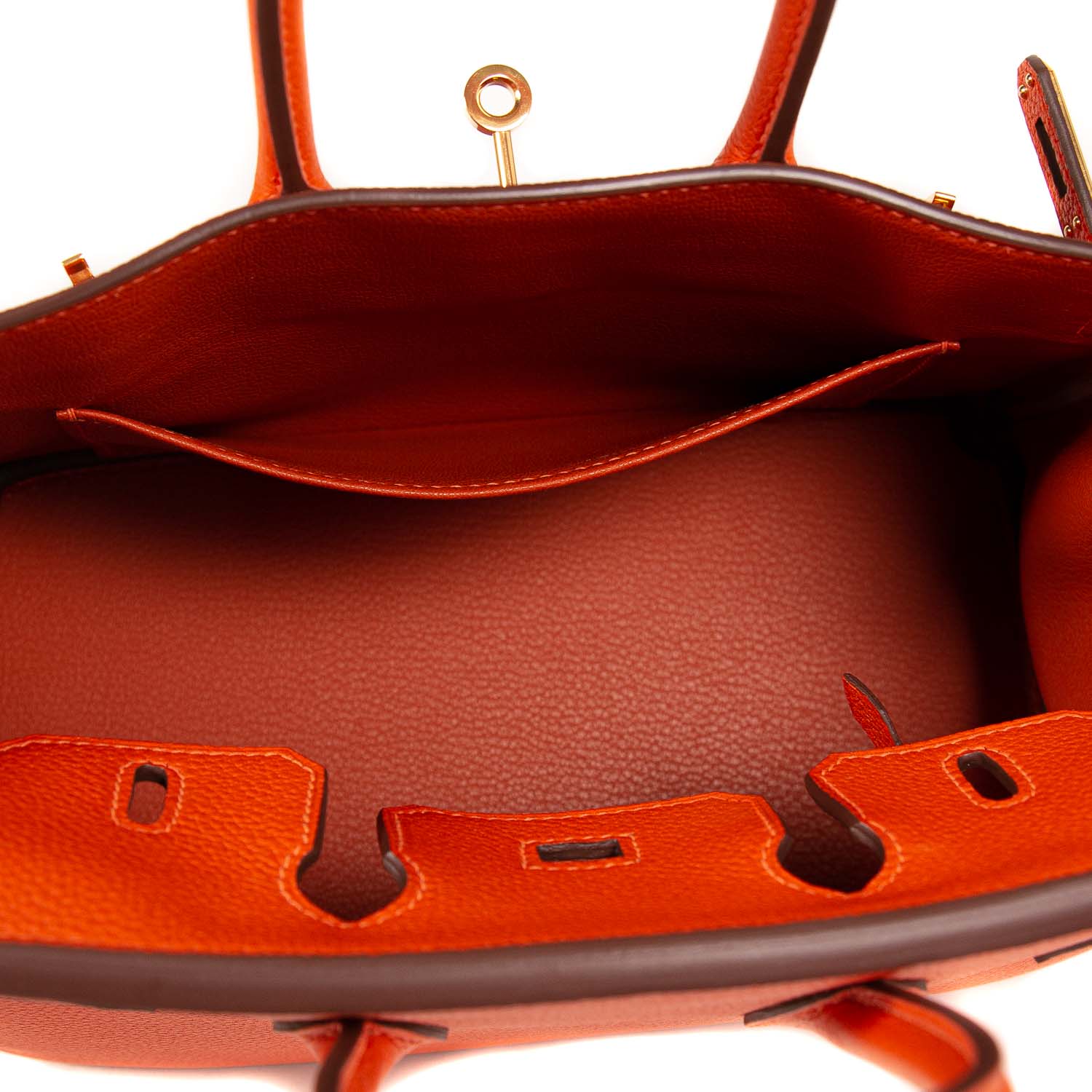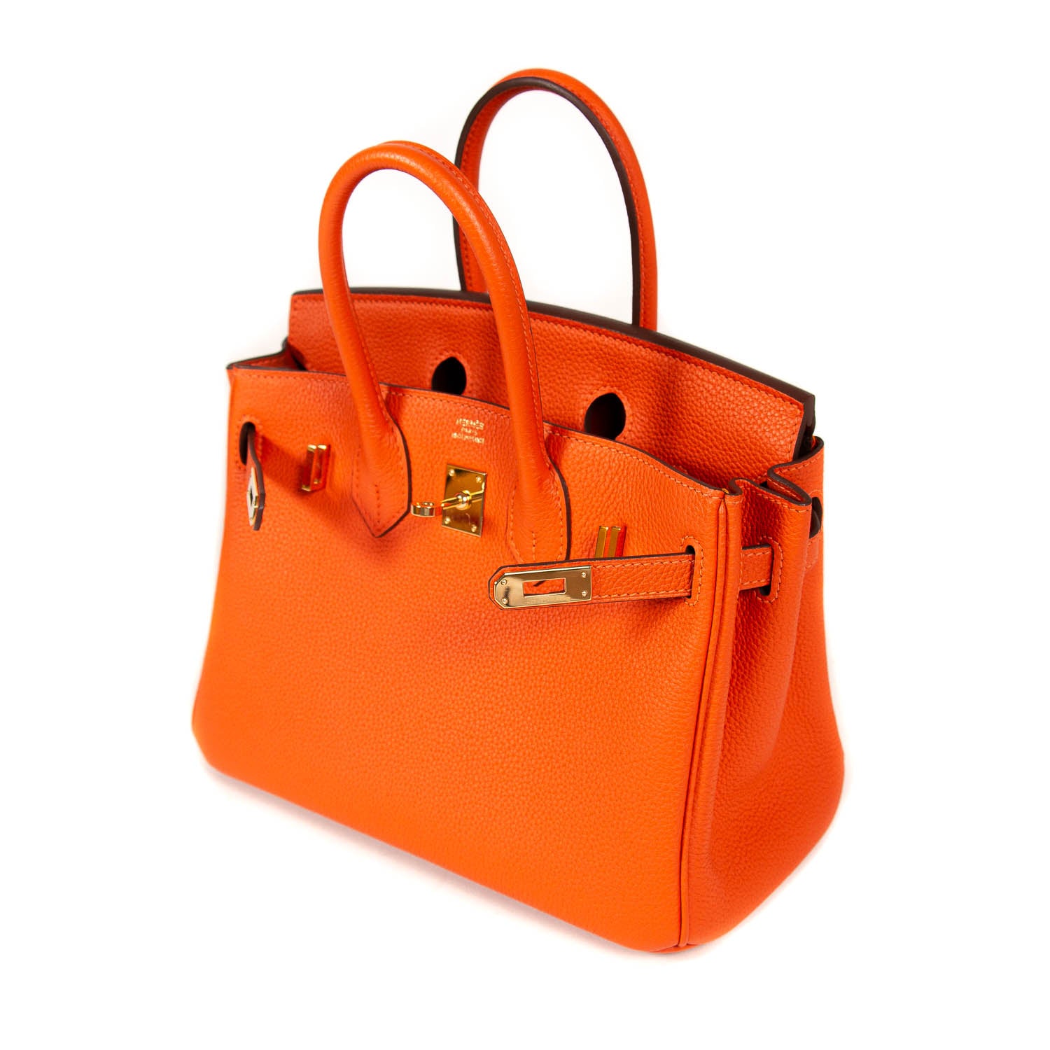 Description: Authentic Pre-Owned Hermès Birkin 25 Orange Togo Leather Gold Hardware