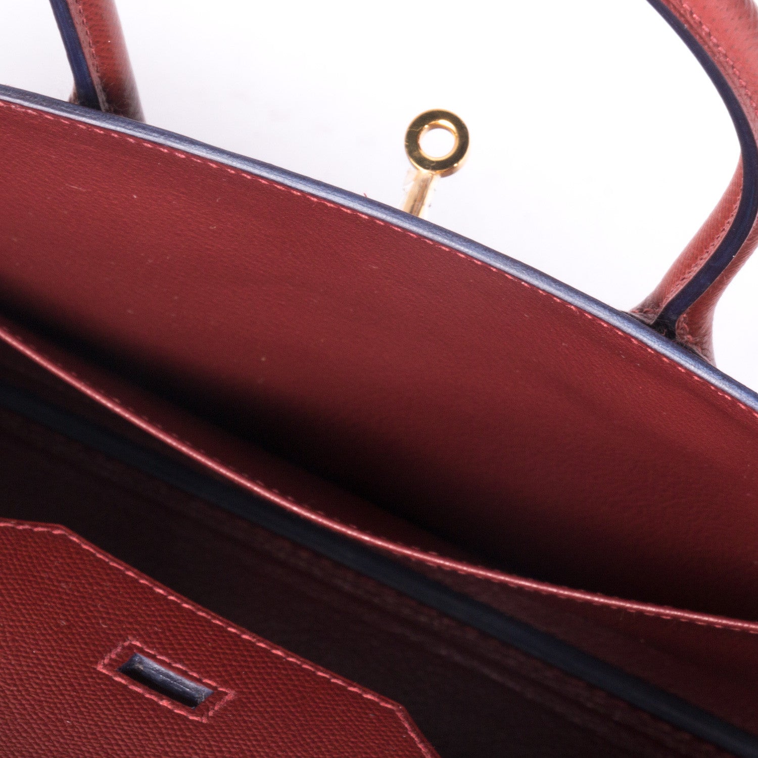 Details: Burgundy Epsom Leather / Gold Tone Hardware / Dual Top Rolled Handles / Burgundy Tonal Leather Lining / Single Large Compartment / Dual Pockets At Interior: Zip Pocket And Slit Pocket / Turn Lock Closure At Front