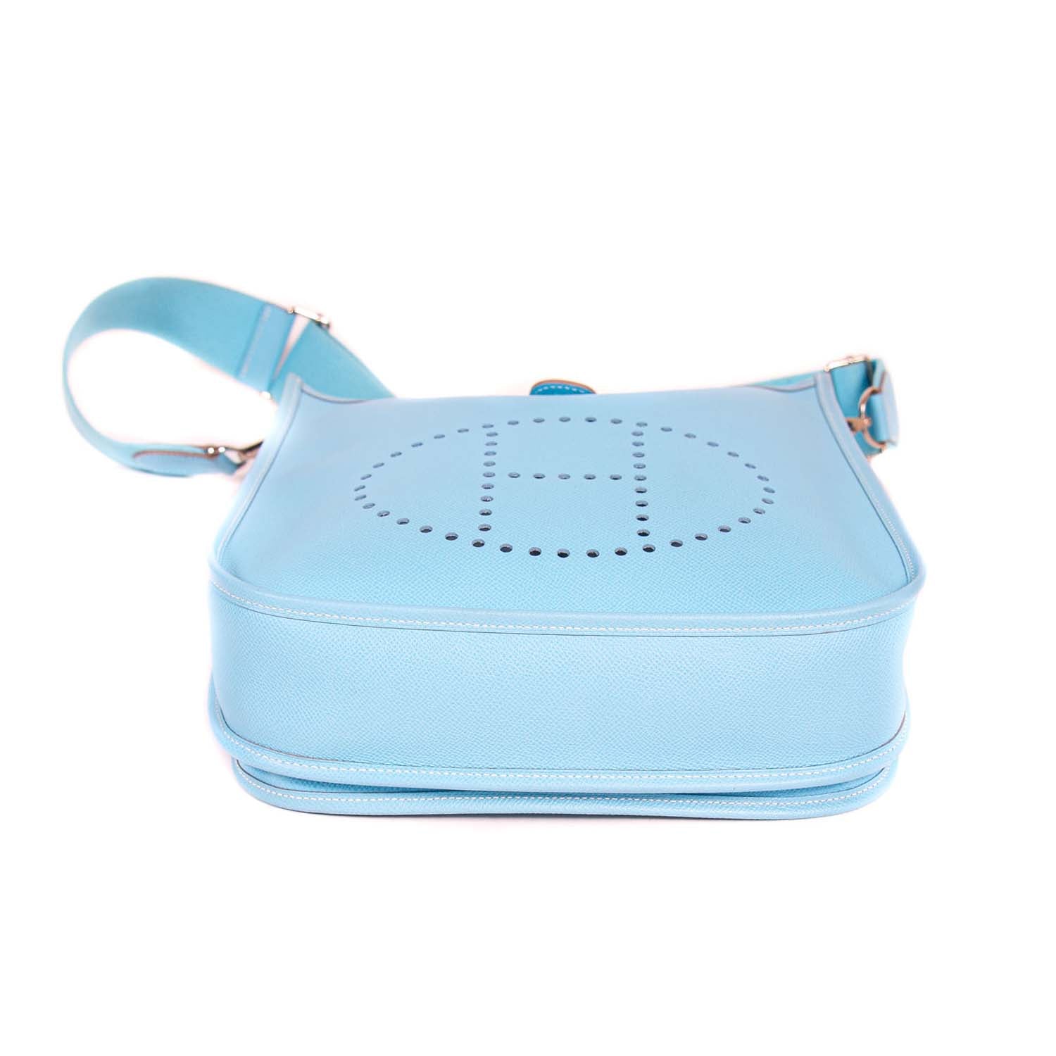 Details: Sky Blue Epsom Leather / Palladium Hardware / Detachable and Adjustable Shoulder Strap / Exterior Pocket at Back / Perforated H Logo at Front / Suede Interior Lining / One Compartment / Push Lock Closure