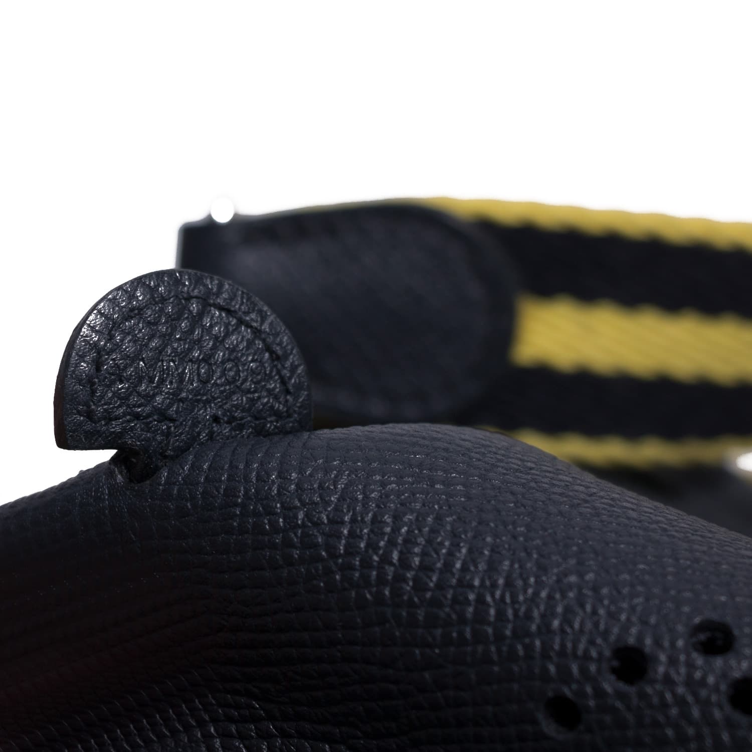 Details: Navy Blue Epsom Leather / Palladium Hardware / Bicolor Shoulder Strap / Large Perforated H Icon In Circle At Front / Snap Closure at Back