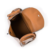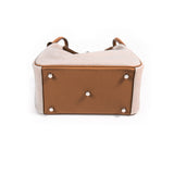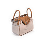 Details: Beige Suede and Gold Swift Leather / Palladium Hardware / Dual Dual and Shoulder Strap / Leather Trim / Protective Studs at Base / Leather Lining with Dual Pockets at Side / Exterior Pockets at Side / Flap Closure with Turn-Lock