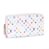 Details: From Takashi Murakami Limited Edition Collection / White Multicolor Monogram Coated Canvas / Brass Hardware / Inside Pink Leather / Gold Tone Zipper / Six Bill Compartment / Eight Card Slots / Single Zipper Compartment