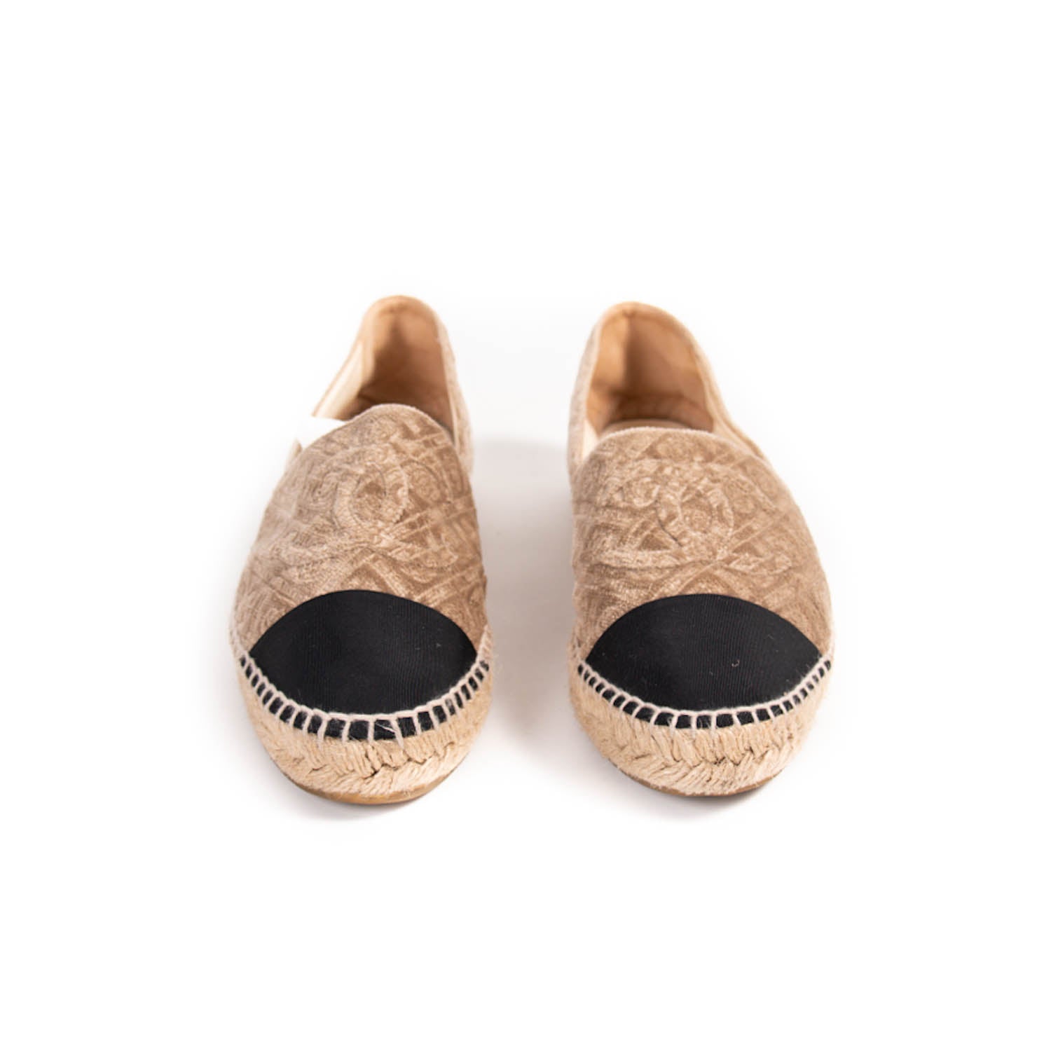 Description: Authentic Pre-Owned Chanel Velvet Flower CC Espadrilles