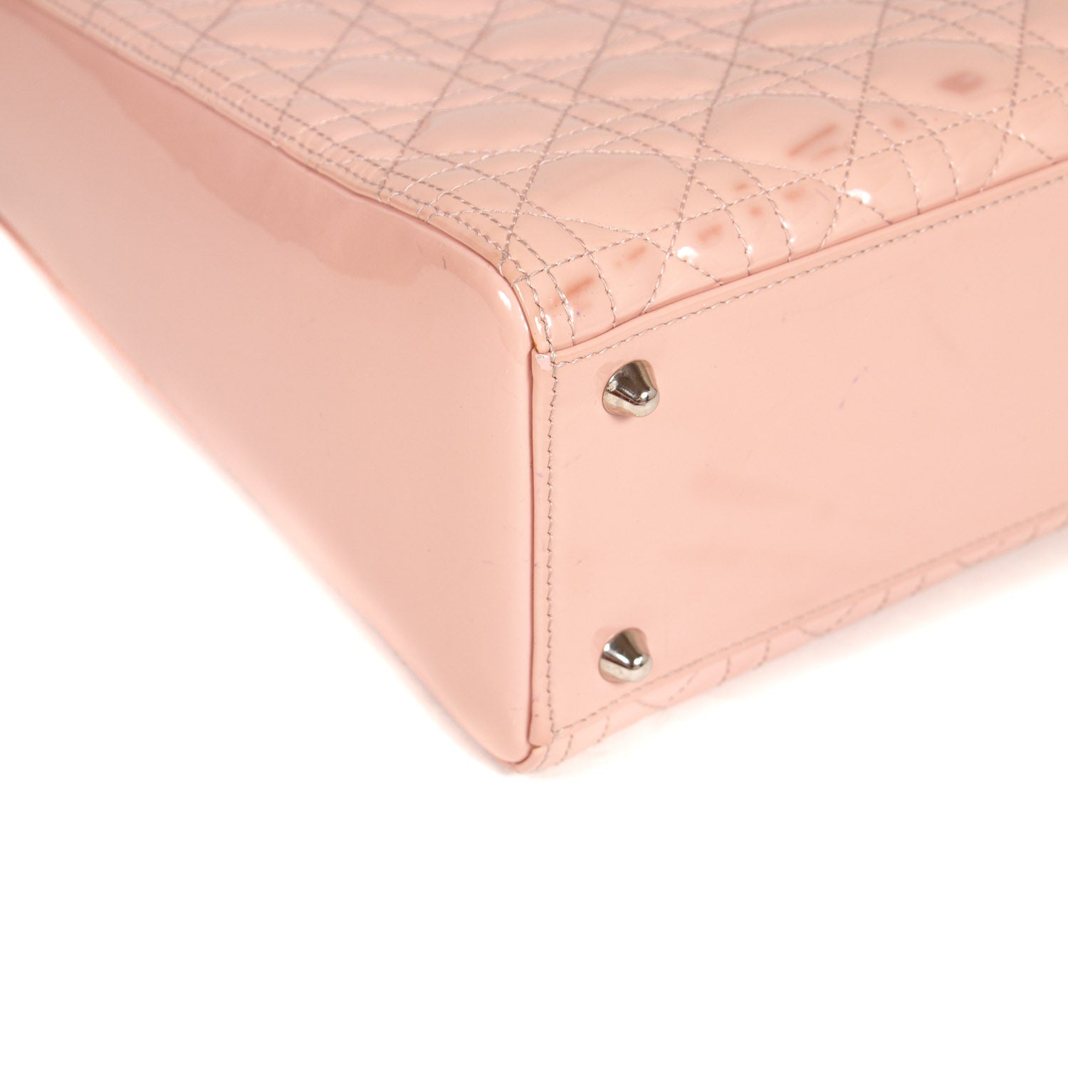 Description: Authentic Pre-Owned Christian Dior Light Pink Patent Lather Large Lady Dior