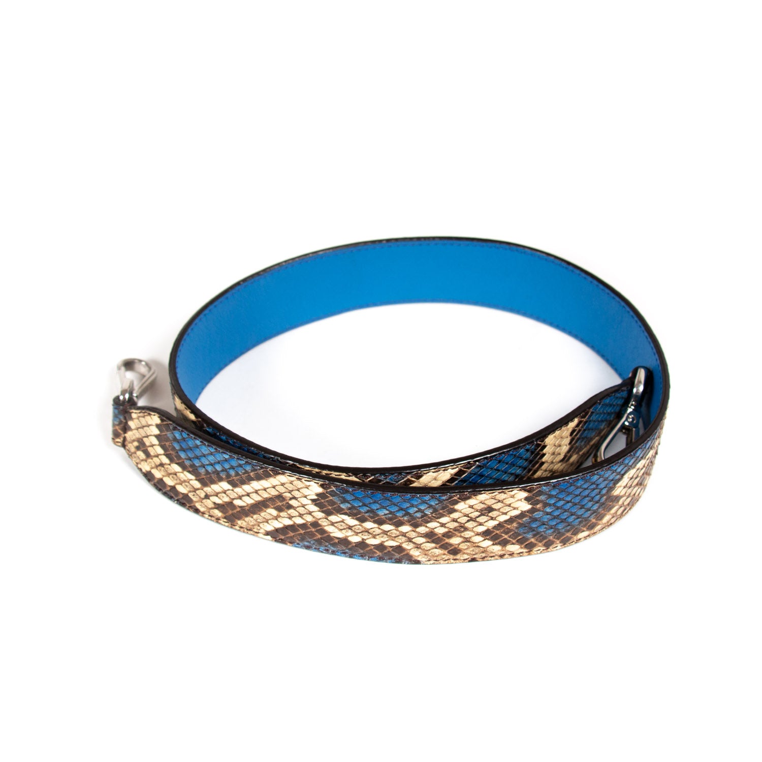 Details: Brown Calfskin Leather / Beige and Brown Python Leather / Silver-Tone Hardware / Single Rolled Handle / Detachable Blue Leather and Python Shoulder Strap / Suede and Python Interior Lining / Two Compartment with Zipper Pocket at Inside / Dual Turn-Lock Closures at Top