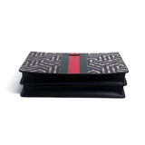 Details: Grey and Brown Coated Canvas / Silver-Tone Hardware / Detachable Leather Shoulder Strap / Handle at Back / Green and Red Stripe / Bee Embroidery at Front / Black Suede Lining / Zipper Pocket at Inside / Three Compartments, Two with Zipper Closure