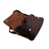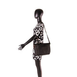 Details: Black Fabric Canvas / Silver Tone Hardware / Adjustable Shoulder Strap / Leather Trim / Exterior Zip Pocket at Back / Single Compartment / Dual Slit Pockets at Interior / Magnetic Snap Closure at Front Flap / Embossed Logo at Front