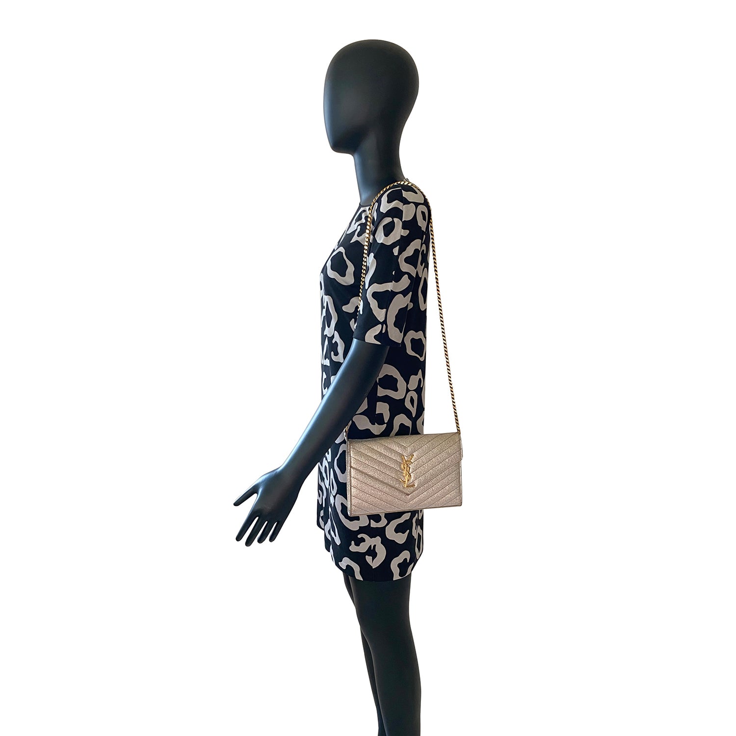 Saint Laurent Grain De Poudre Monogram Wallet On Chain