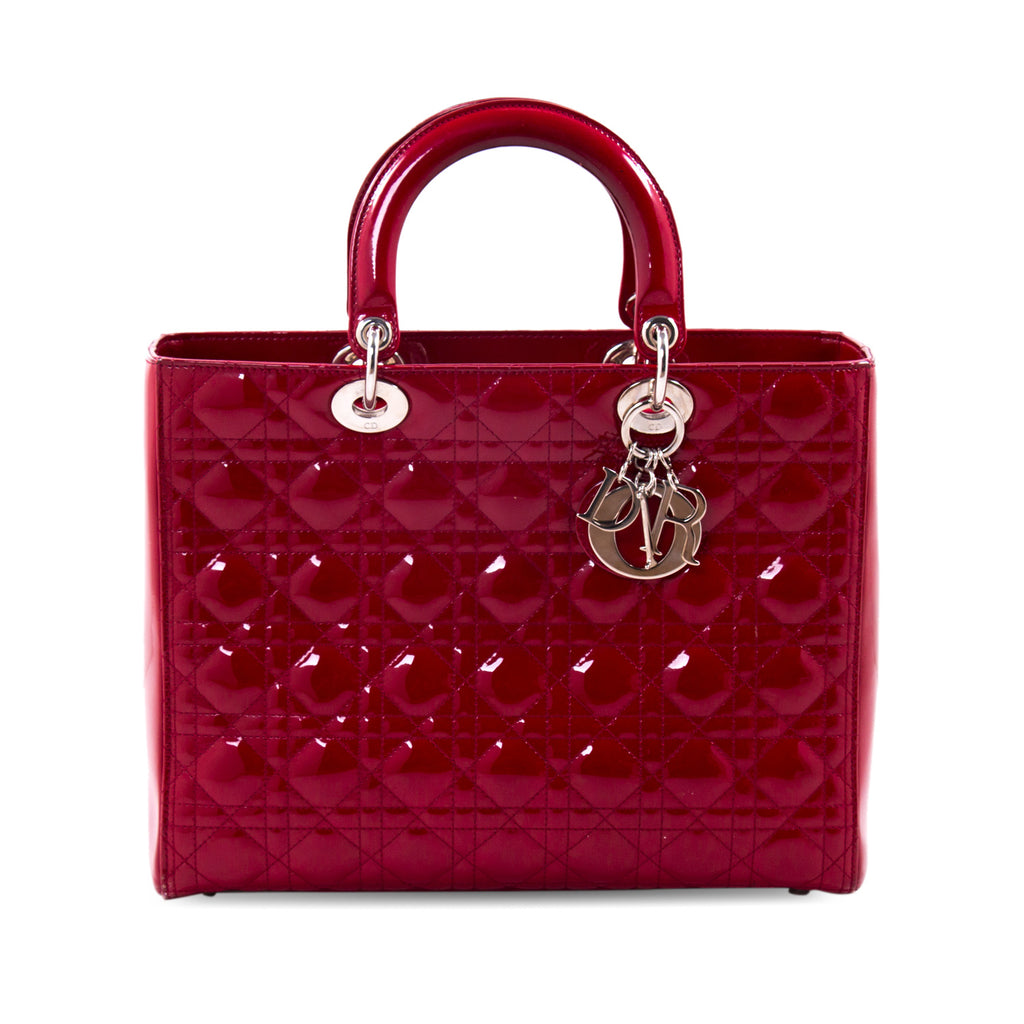 Description: Authentic Pre-Owned Christian Dior Red Patent Large Lady Dior