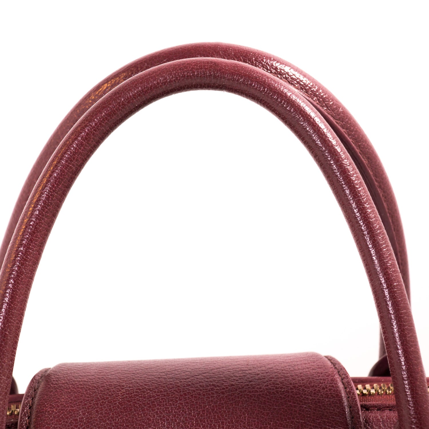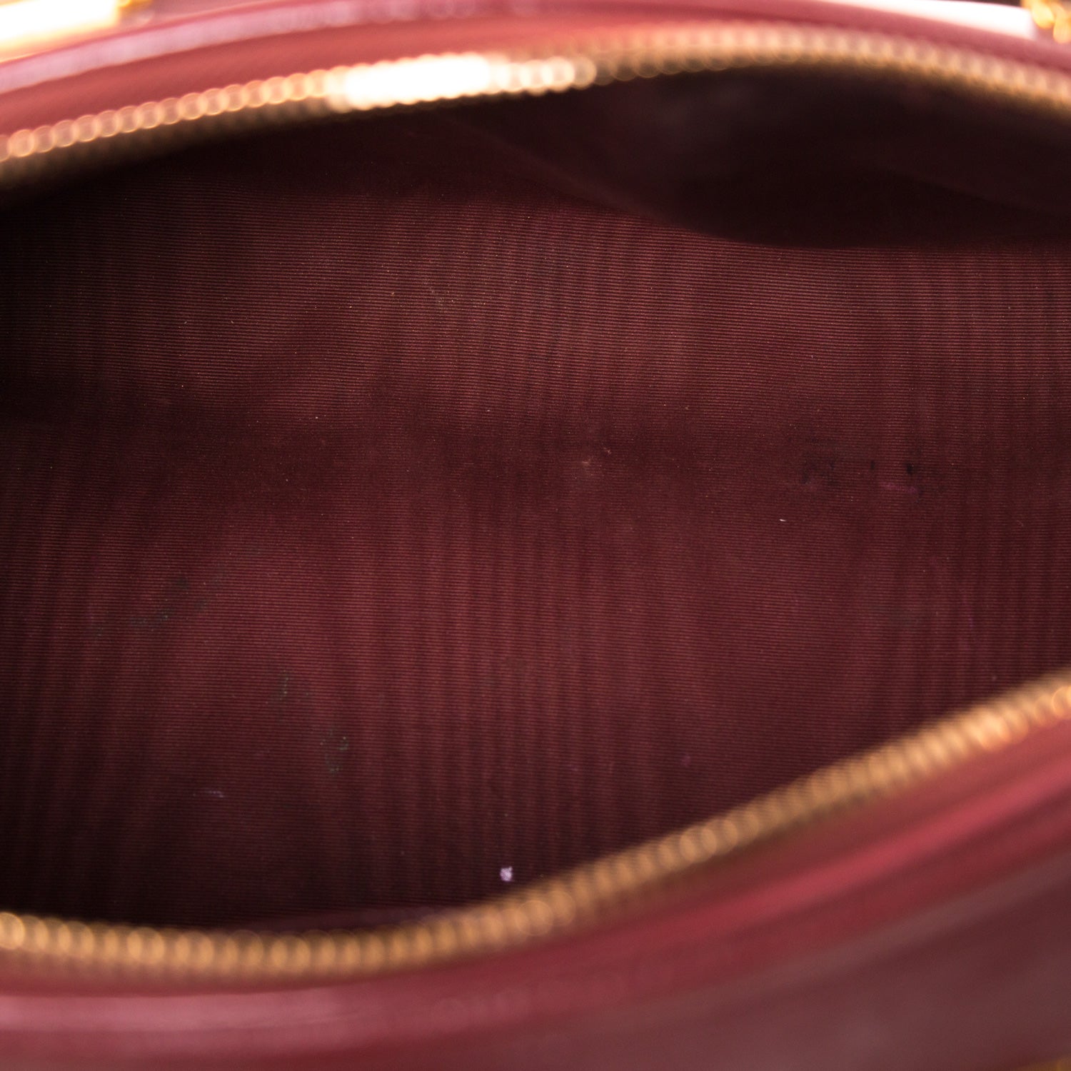 Details: Monogram Coated Canvas / Brass Hardware / Dual Rolled Handles / Burgundy Leather Trim Throughout / Maroon Woven Lining / Single Slit Pocket at Interior Wall / Zip Closure at Top / Magnetic Snap Closure at Front Flap