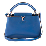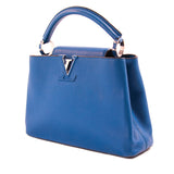 Details: Blue Taurillon Leather / Silver-Tone Hardware / Single Rolled Handles / Detachable Shoulder Strap / LV Logo at Front Face / Protective Feet at Base / Brown Leather Lining / Dual Compartments / Zipper Pocket at Inside / Fold-In Flap Closure at Font